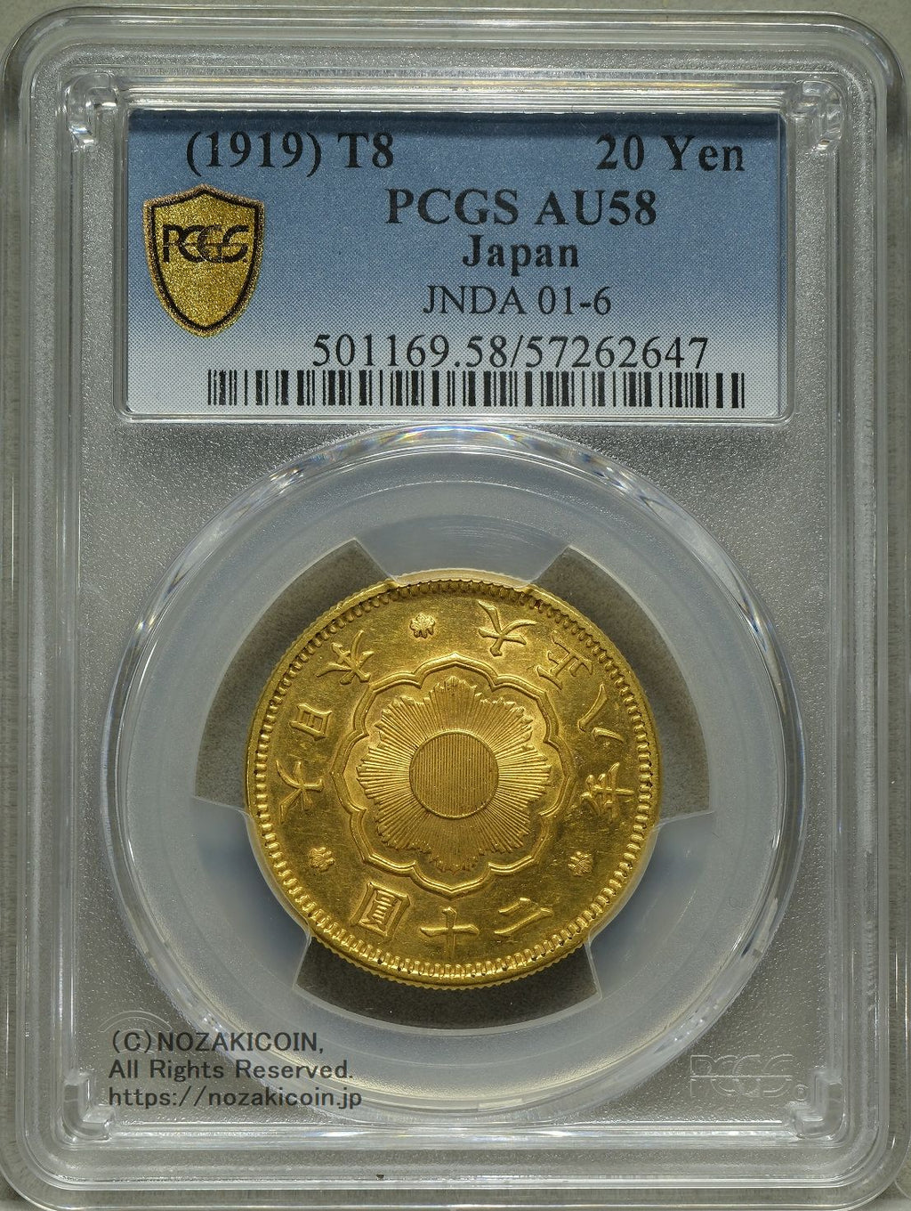 新20円 大正8年(1919) 発行枚数 1,531,217枚 直径 28.78mm 品位 金900 / 銅100 量目16.67g