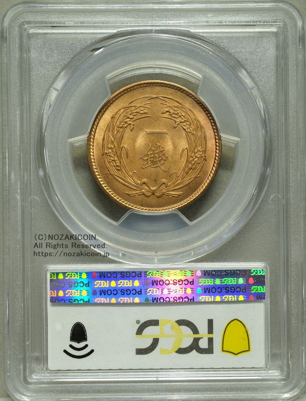 稲1銭青銅貨 明治32年 完未 PCGS MS66RD