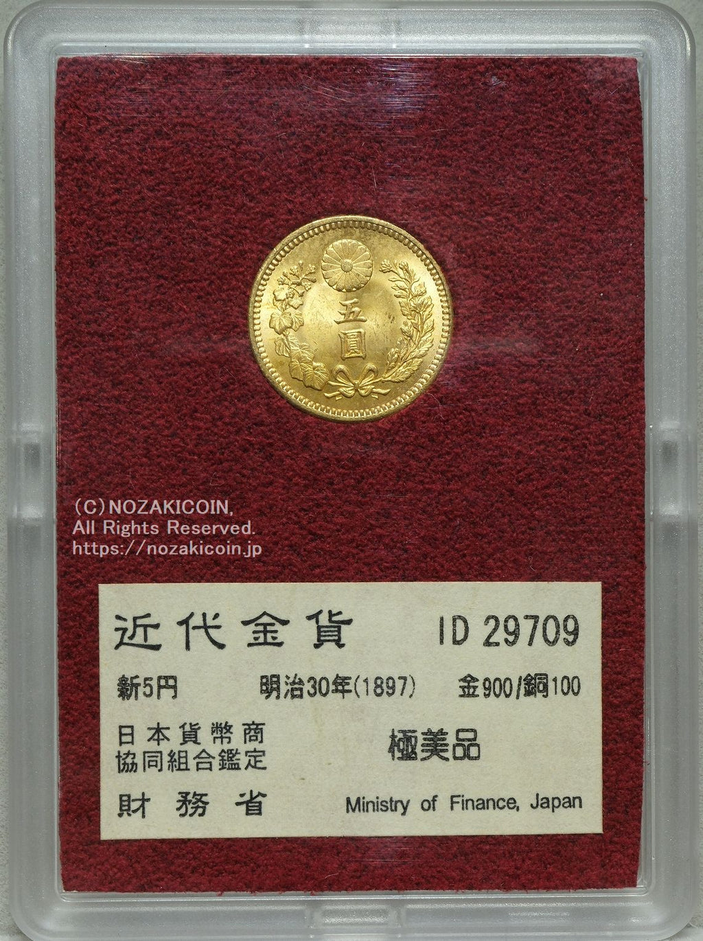 新5円金貨 明治30年 極美品 29709 財務省放出品