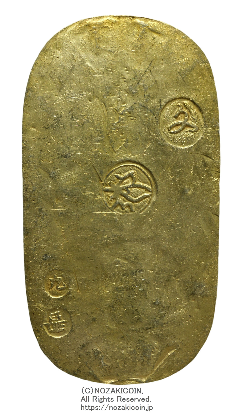 文政小判は文政2年~文政11年(1819~1828)に鋳造されました。品位は金559 / 銀441 13.1g。裏の極印が草書体の文の字なので、草文小判ともいいます。鑑定書(令和3年7月20日)・桐箱付き。