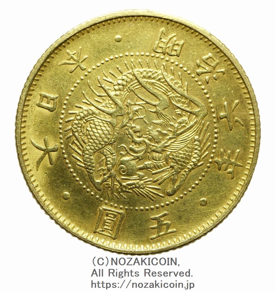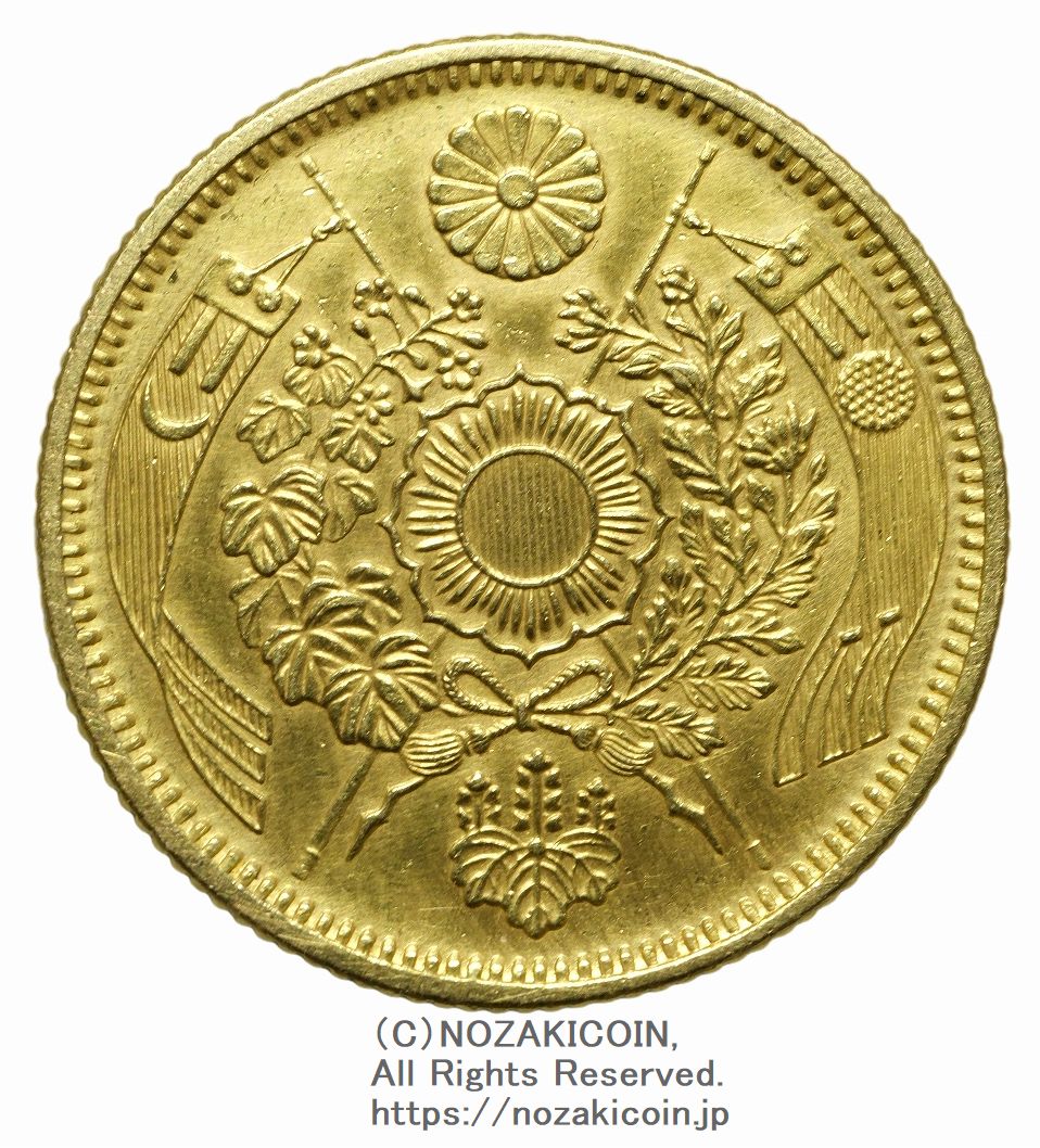 明治6年 1873年 旧五円金貨 縮小 発行枚数 3,148,925枚 直径 21.82mm 品位 金900 / 銅100 量目8.33g 鑑定書付(令和8年3月17日発行)